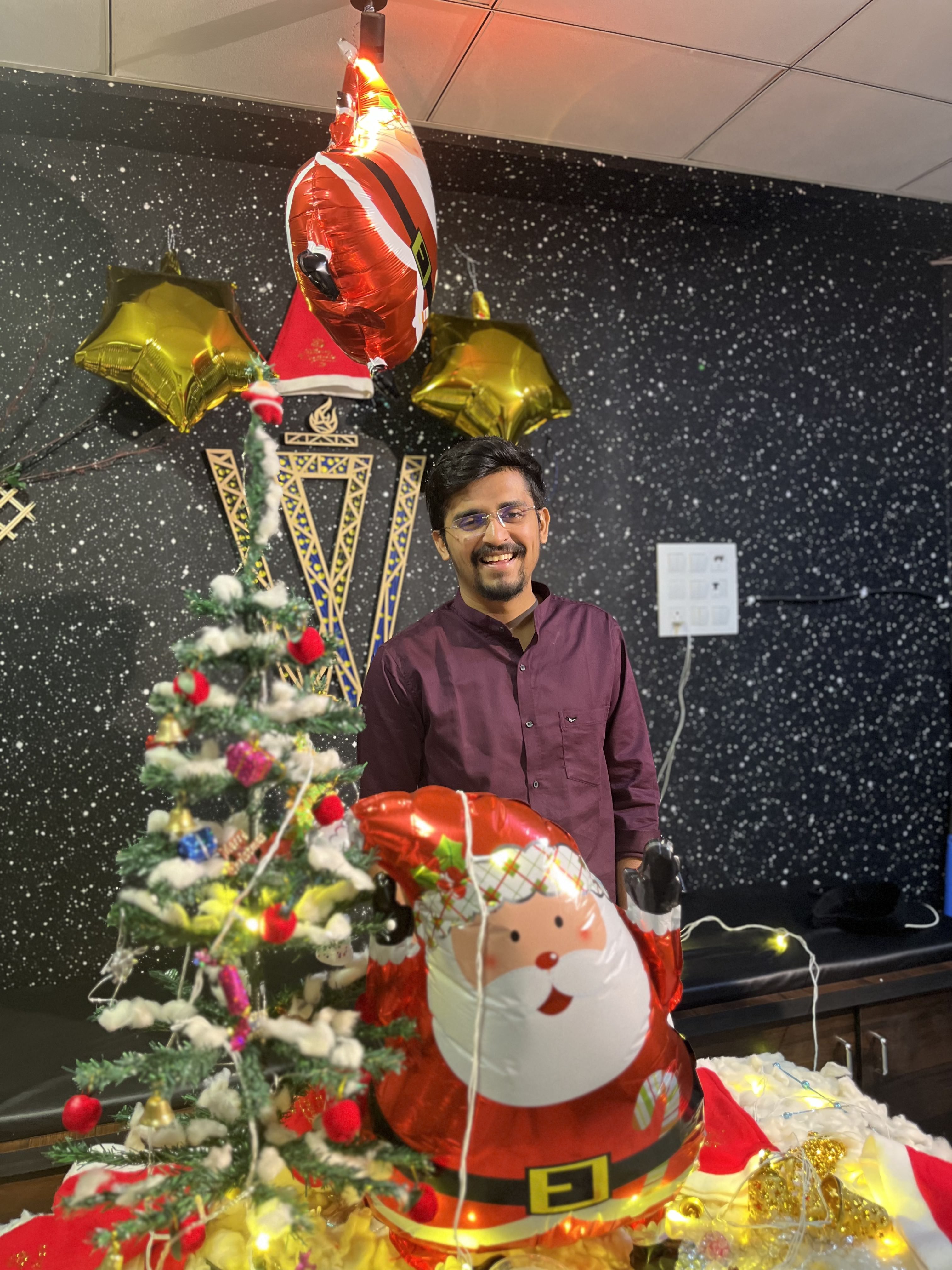 Celebrating Brijesh's birthday with cake, gifts, and fun.