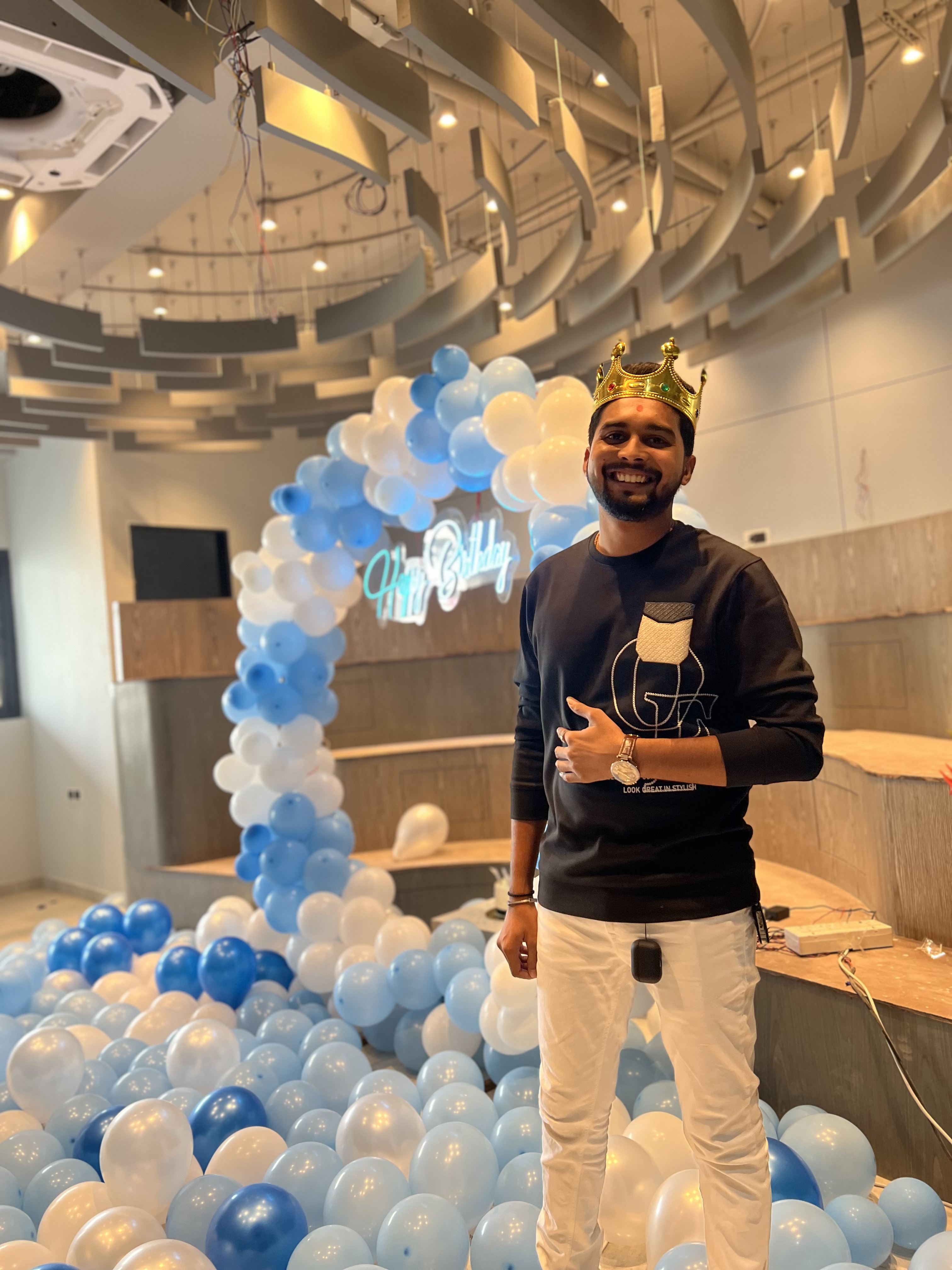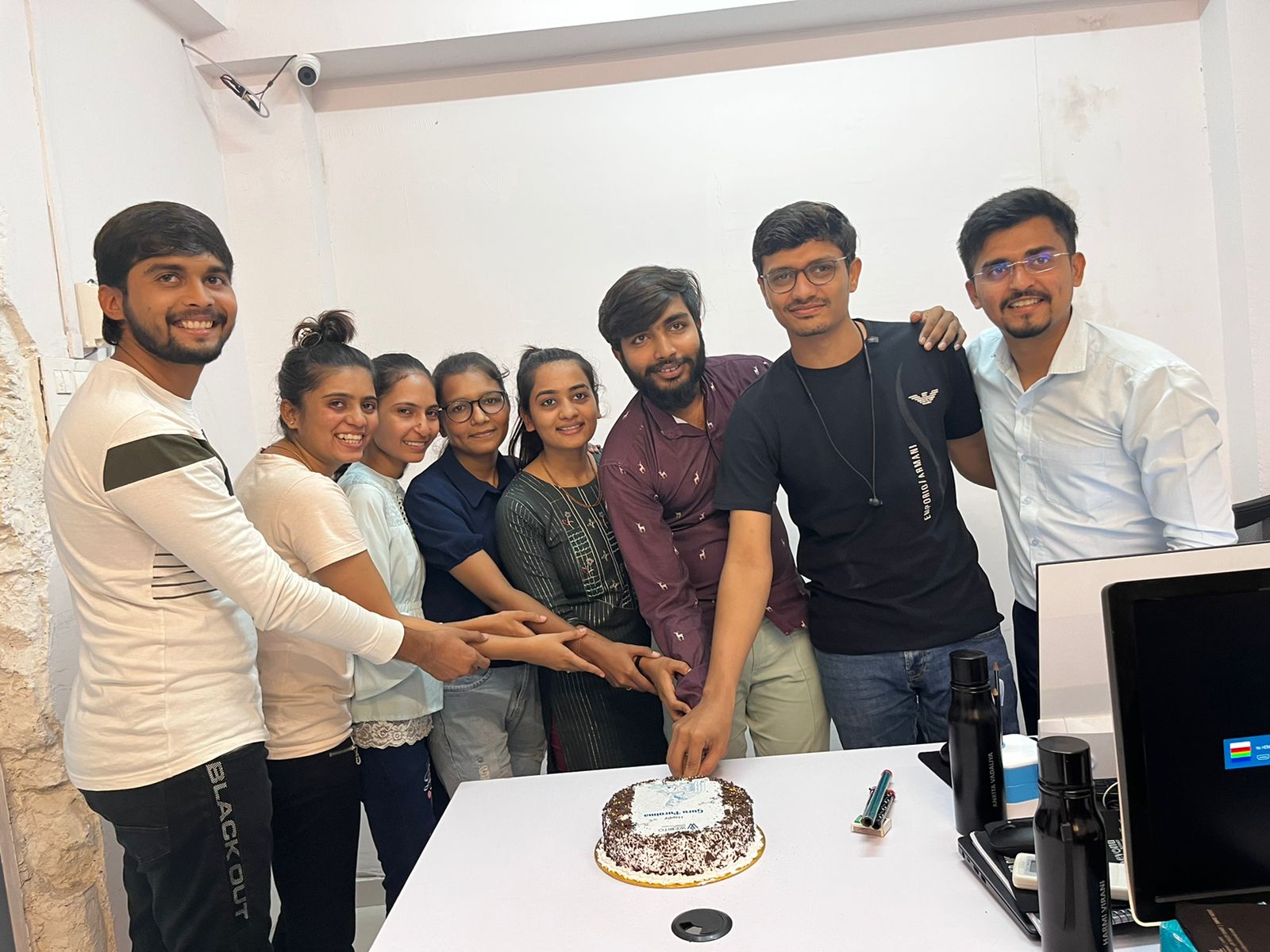 Celebrating Brijesh's birthday with cake, gifts, and fun.